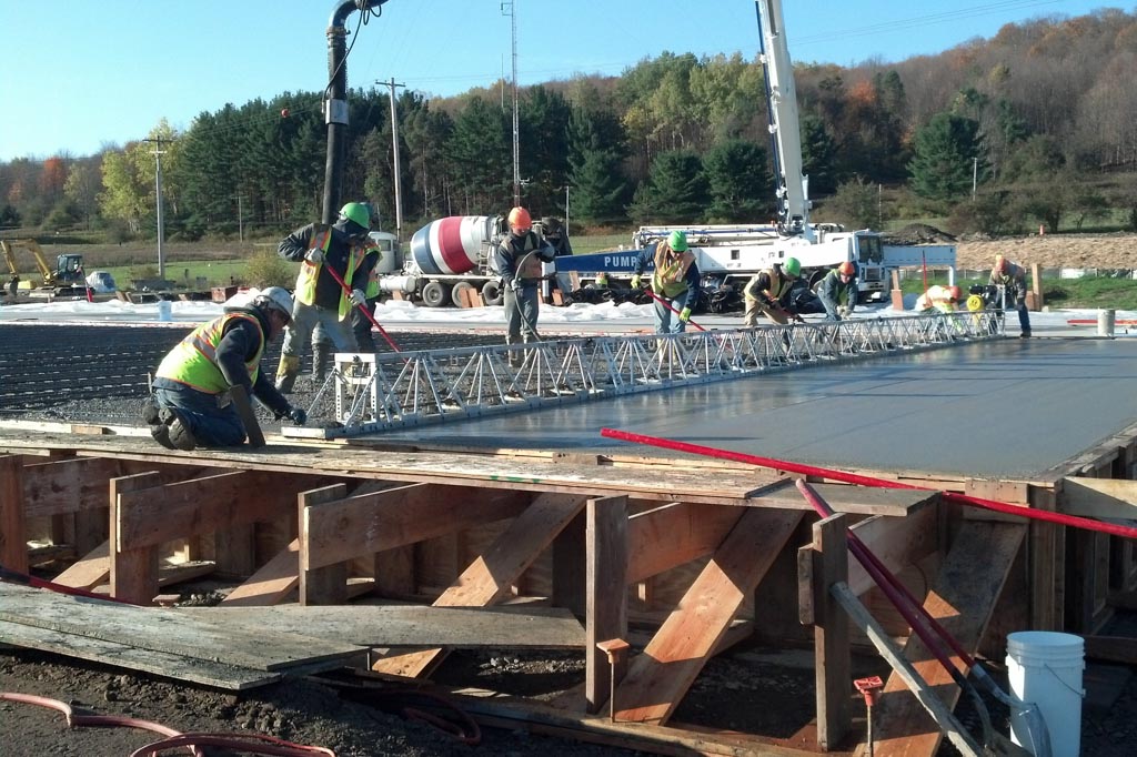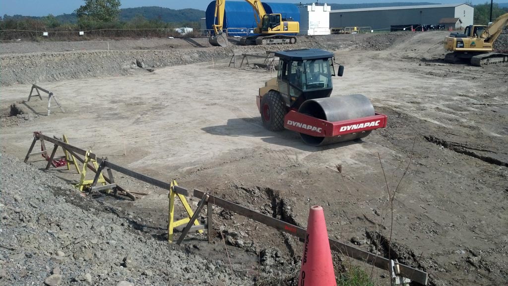 Construction of a 36” thick 33,000 SF exterior concrete storage pad and facility. 10,000 cubic yards of existing contaminated or otherwise unsatisfactory soil was removed from below the storage pad location and replaced with structural backfill. 3,000 cubic yards of heavily reinforced concrete was successfully placed and finished while adhering to cold-weather concrete requirements. $4M Project completed in 2013.