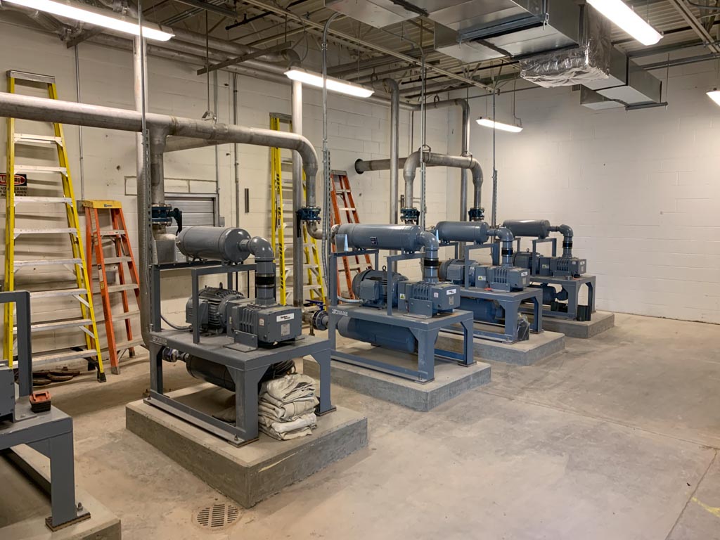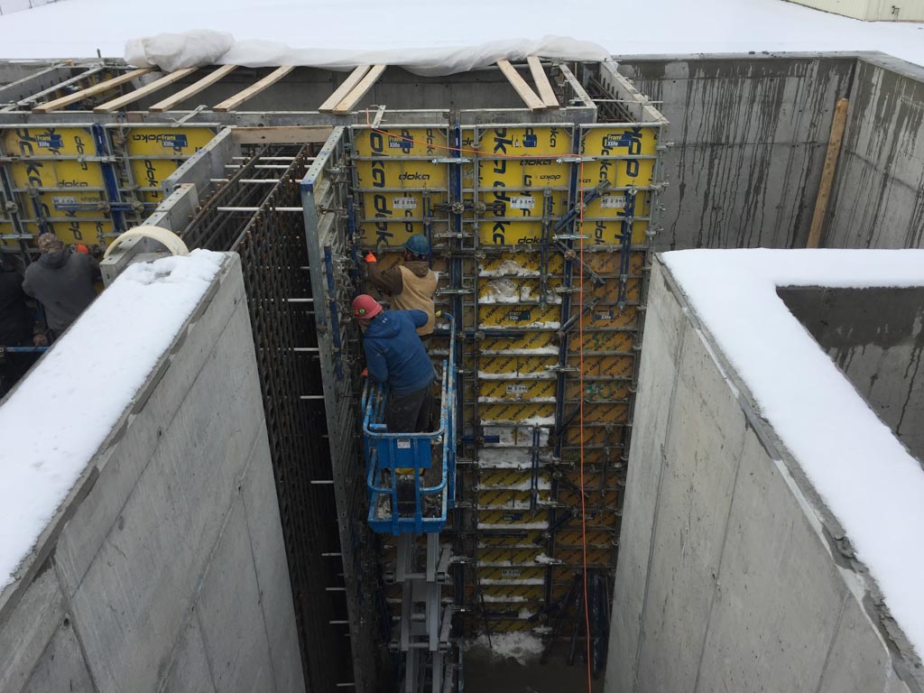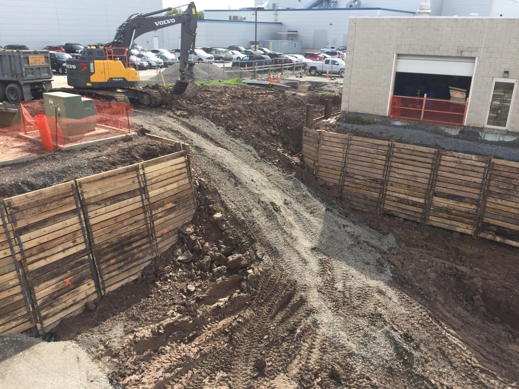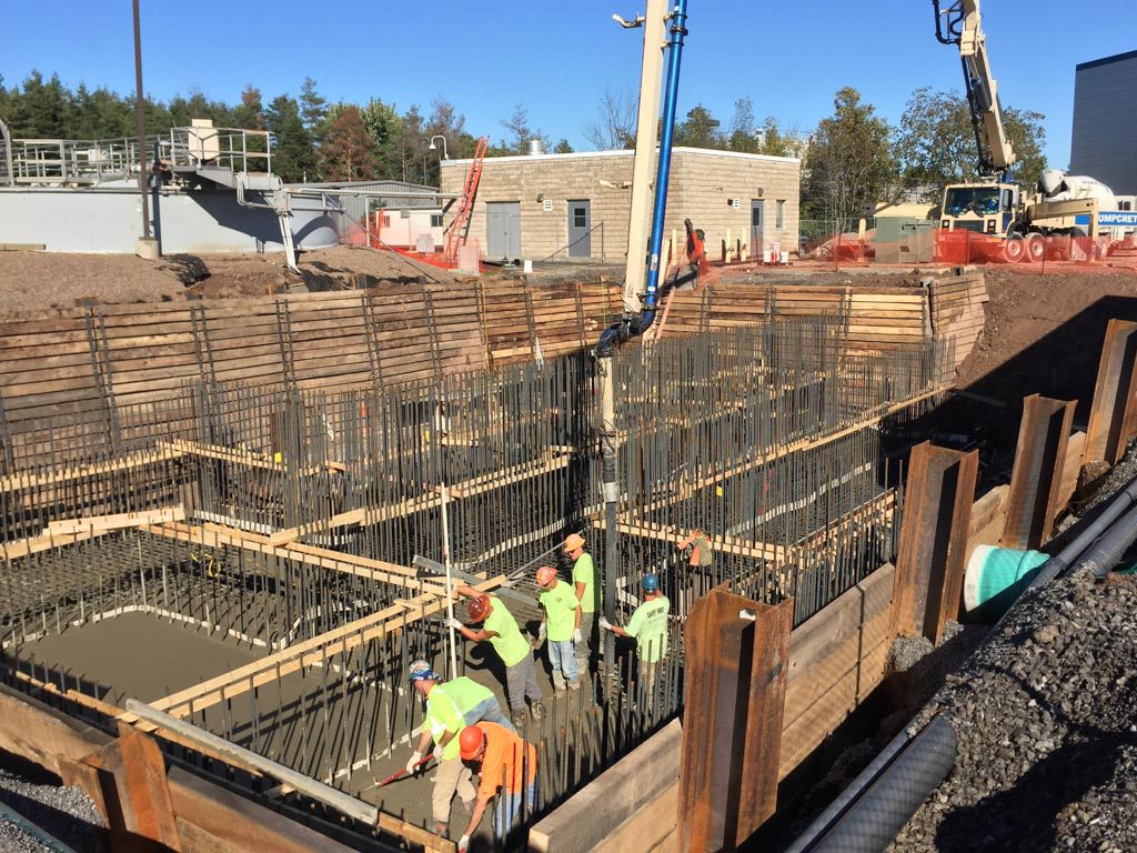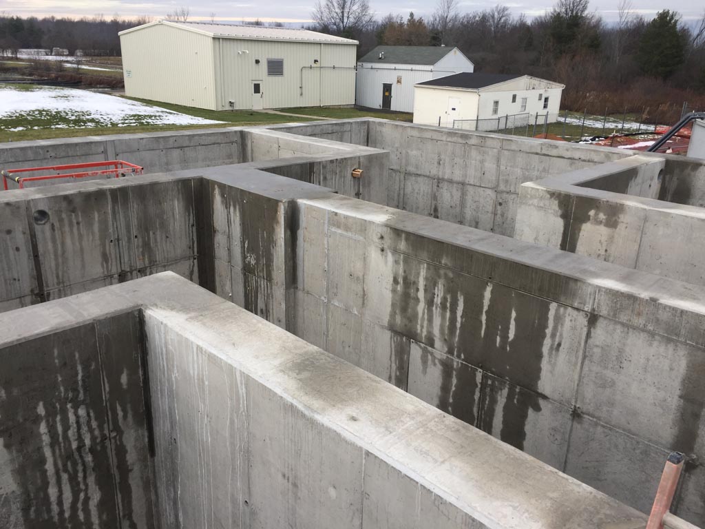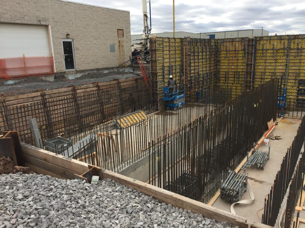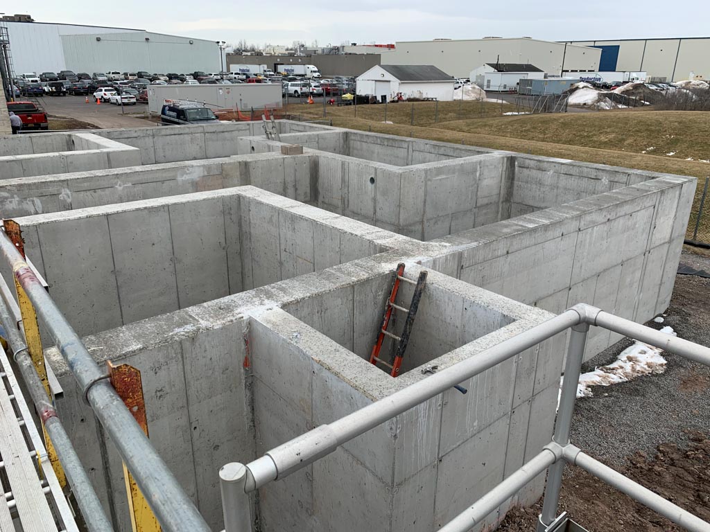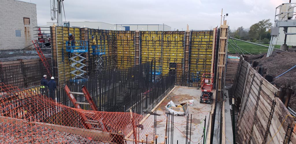 Construction of a new Sequencing Batch Reactor (SBR) Wastewater Treatment Plant designed to handle and treat increased process flows planned from the existing manufacturing facility. The presence of existing plant infrastructure throughout the small work site was a challenge for all aspects of construction. An excavation shoring system was installed to address the conditions presented, followed by construction of the multi-level cast-in-place concrete tank system, and then completing the installation of the new air blowers, welded stainless steel air piping, and SBR treatment equipment. $5M project completed in 2019.
